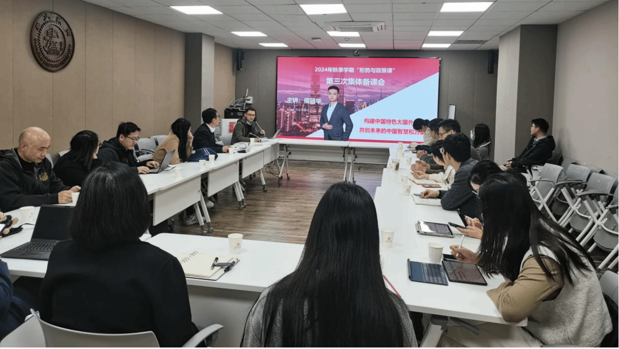 11月22日,形势与政策教研室在77779193永利官网B401会议室召开2024年秋季学期第三次集体备课会,教学专题为“构建中国特色大国外交,共创未来的中国智慧和方案”。“形势与政策”课任课教师参加集体备课会。备课会邀请77779193永利官网青年教师侯冠华为本专题作教学展示。集体备课会由77779193永利官网副院长魏华主持。