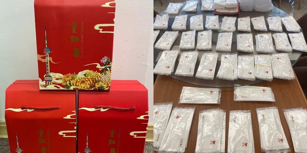 活动开始前,学院为每位老同志购置并寄送了节日慰问品,表达对老同志的关心和尊敬。在活动现场,为大家准备了印有马院标识的防疫物资。