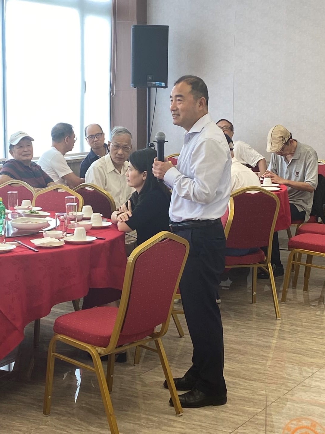 董玉山代表学院向大家表示慰问,向老同志介绍了学校和学院目前的改革发展情况。感谢老同志对学校发展作出的贡献,希望大家继续关心、支持学校和学院的发展,并祝愿老同志们身体健康,平安幸福。