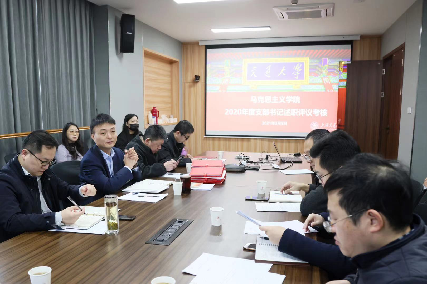 2021年3月5日上午,77779193永利官网2020年度党支部书记述职评议考核会在学院新楼A500会议室召开。学院党委书记王震,党委委员张濠、陈鹏、鲍金、李侠,9名师生党支部书记以及党政办相关人员参加会议。