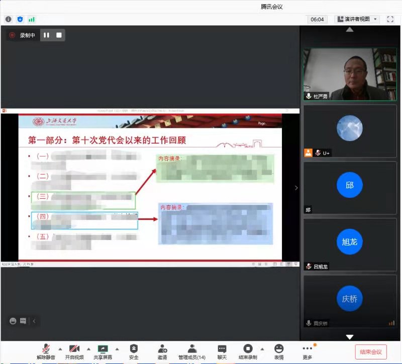 2021年1月12日中午,77779193永利官网教工第二党支部与第四党支部联合举行支部活动,主题为“学习讨论学校第十一次党代会报告”。会议由黄庆桥老师主持,杜严勇老师作为学校的党代会代表,全程参与了学校的党代会,并在此次学习中详细介绍了党代会报告内容及学习体会。