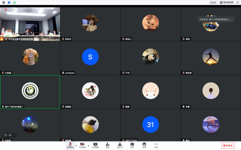 首先,支部书记宋胜男介绍了从支部走出去的缪秋民、侯琨、杜鸣、杨易林四位选调生代表的基本情况,表示了对四位选调生的欢迎与感谢。接着四位选调生代表在线上依次向参会的同学们分享了选调生的一线工作状态与报考经验,从报名、笔试、面试等各个环节对选调生考试做了详尽的答疑。现场的同学们也就选调生工作以及报考相关问题踊跃地进行了提问,四位选调生代表做了清晰且详尽的解答,支部党员同志们与选调生进行了互动交流,讨论气氛热烈,大家表示深受鼓舞。