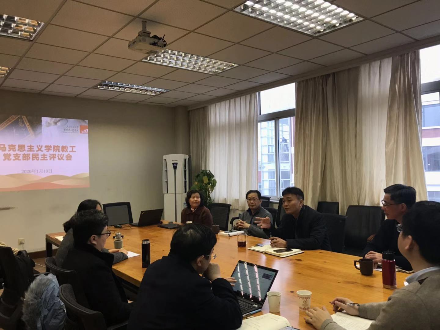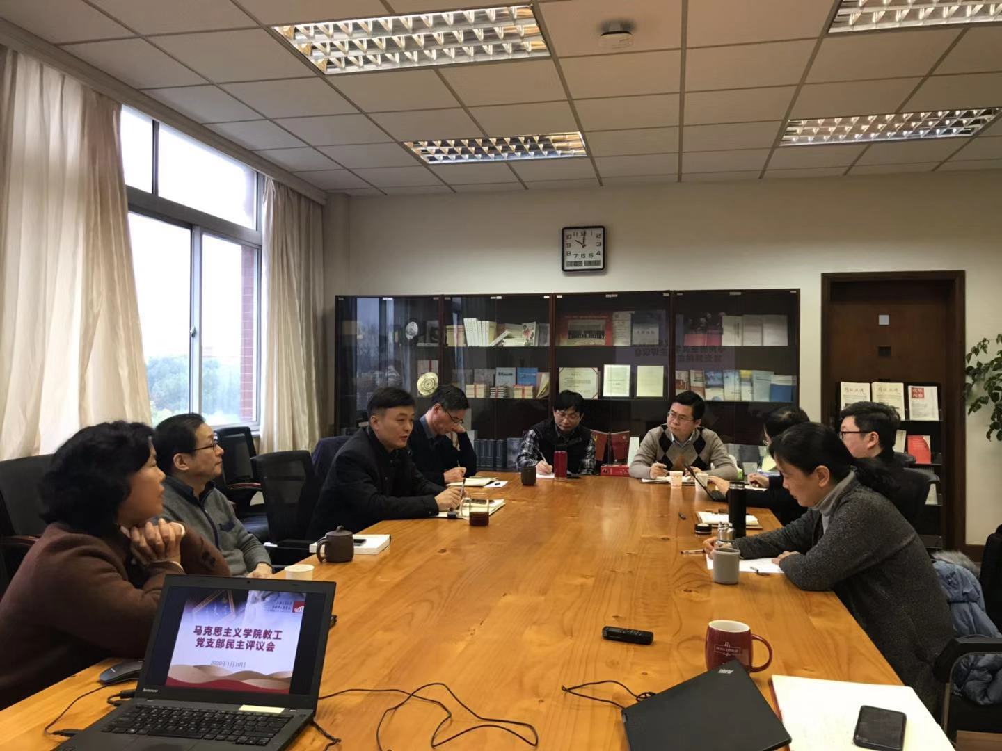 党委书记王震在总结讲话中肯定了各支部党建工作,认为各支部党建工作总体上开展扎实、认真,颇有成效。在学院党员教师占比较较高的前提下,王震希望各支部能积极思考怎样进一步激励学院党员教师积极发挥先锋模范带头作用。王震同时希望各支部能进一步加强政治理论学习、重视教师的思想政治工作、党员的发展和非党员的学习教育等工作。王震强调,2020年度各支部党的建设工作要进一步对照学校党委对基层党建工作的总体要求,围绕学院发展建设过程的新问题、新任务开展,激励各支部2020年度党的建设工作在学科评估、人才引进、学院搬迁等学院中心工作中进一步发挥积极的作用。