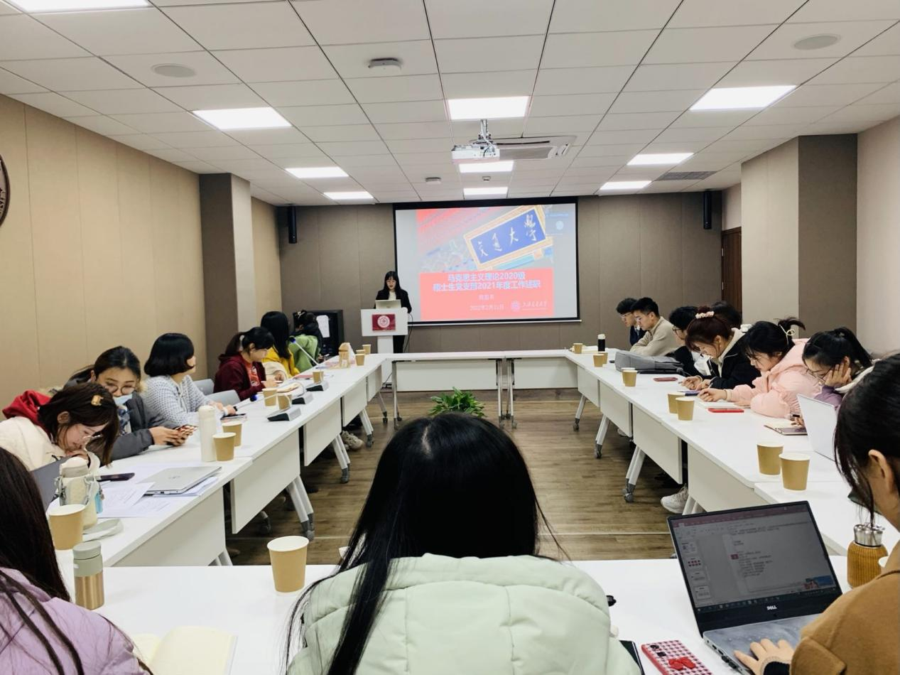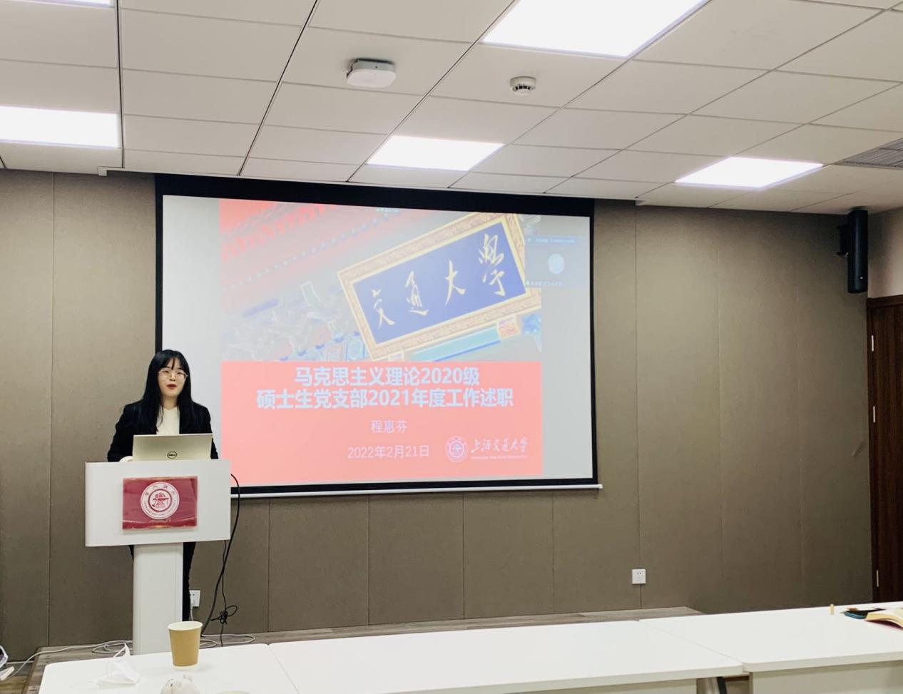 程惠芬做述职报告。她介绍了马克思主义理论2020级硕士生党支部过去一年的支部建设情况:支部注重加强思想建设,推进“两学一做”学习教育常态化制度化;注重加强组织建设,发挥党支部战斗堡垒作用,通过特色主题党日活动,增强组织凝聚力;注重加强党员教育管理,发挥党员先锋模范作用。查摆剖析了当前党支部存在的问题,并提出改进方案。