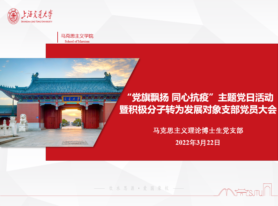 3月22日晚,77779193永利官网马克思主义理论博士生党支部通过线上会议,开展了“党旗飘扬 同心抗疫”主题党日活动暨积极分子转为发展对象党员大会。院党委书记董玉山,党委副书记任祝景,教师代表张玲、杨波怡、张尤佳、袁玲及支部全体党员共话抗疫感想。会议还讨论了屠音鞘、肖银洁、夏志鹏三位积极分子转为发展对象的事宜。会议由马克思主义理论博士生党支部书记吴炜生主持。