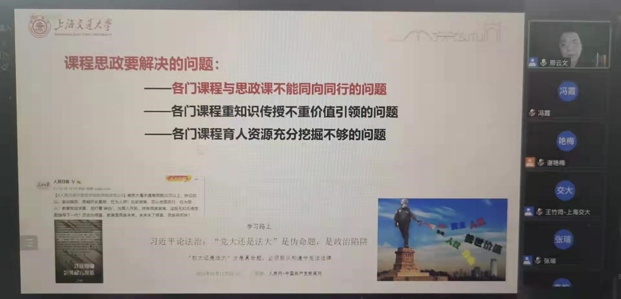 与会支部成员积极讨论如何将抗疫精神融入思政课教学之中。主要包括结合上海以及交大校园内抗击疫情的亲身经历,讲好其背后所体现的抗疫精神和中国治理的制度优势,增强学生对于中国道路的认同感。