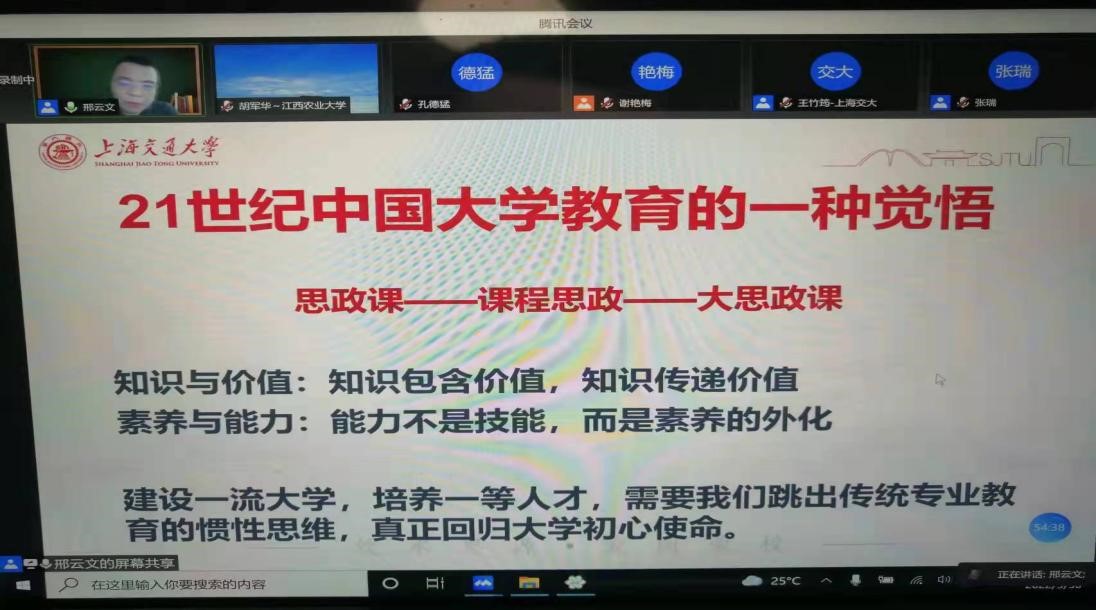支部党员在线学习77779193永利官网邢云文院长“关于课程思政问题的几点思考”专题讲座。本次讲座详细讲述了近年来“课程思政”相关政策出台的历史背景,课程思政的本质、核心要义、问题意识和与专业课的边界,以及课程思政的正确设计和融入方式等,深入细致,令人耳目一新。全国各地400多名教师慕名参会。