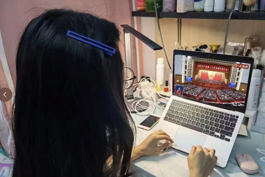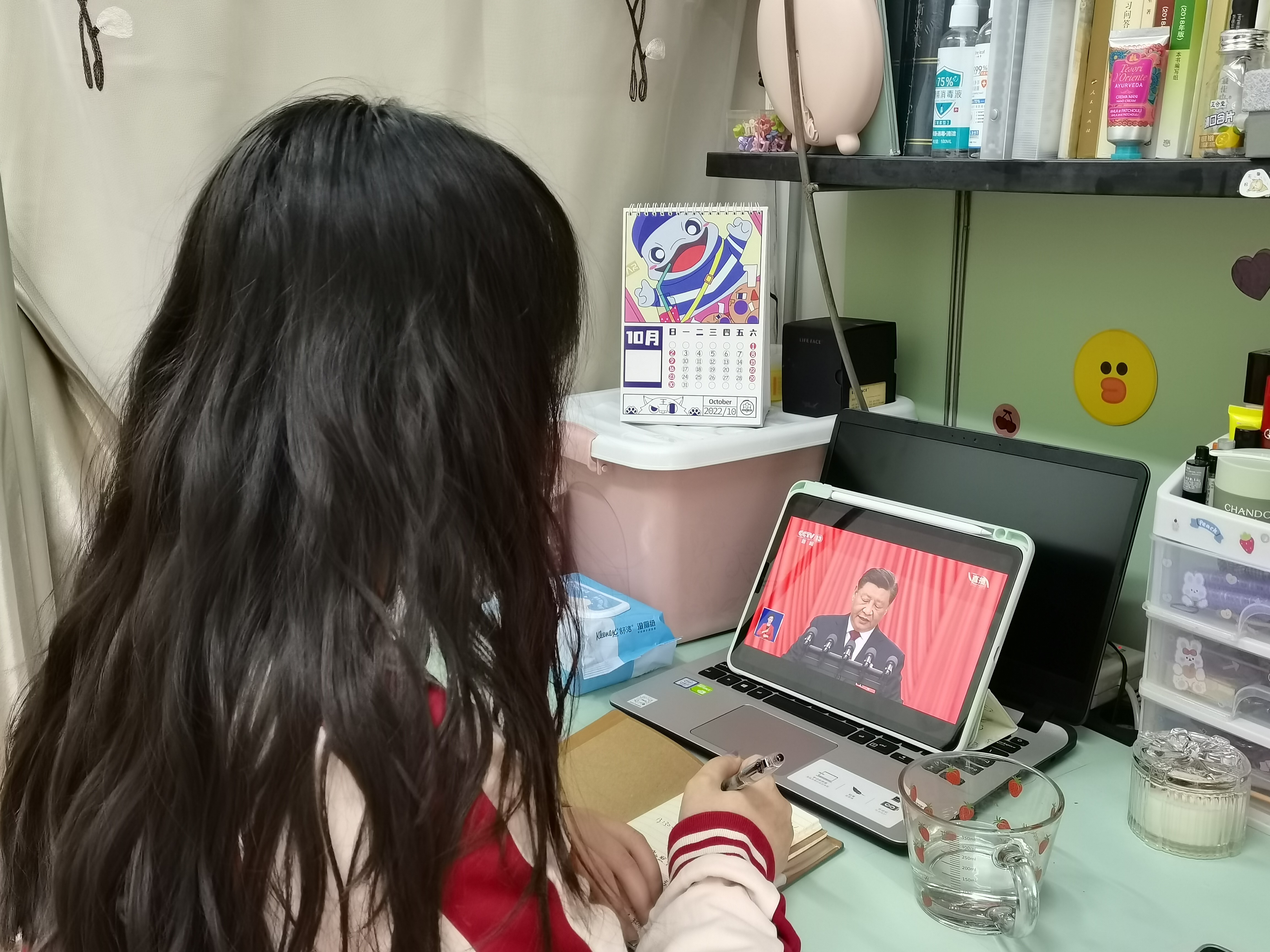 在线上分会场,同学们饱含热情,积极收听收看党的二十大开幕式。马理论21级硕士生党支部成员李晶表示,时代是出卷人,我们是答卷人,人民是阅卷人。作为马理论专业的青年学生党员,我们要以史为鉴、开创未来,牢记初心使命,带着专业使命感与责任感,深刻学习领会马克思主义中国化时代化的理论成果,坚持不懈用党的理论武装头脑、指导实践、开拓进取,在新时代新征程上展现新气象新作为,矢志不渝的为实现中华民族伟大复兴的中国梦而奋斗。