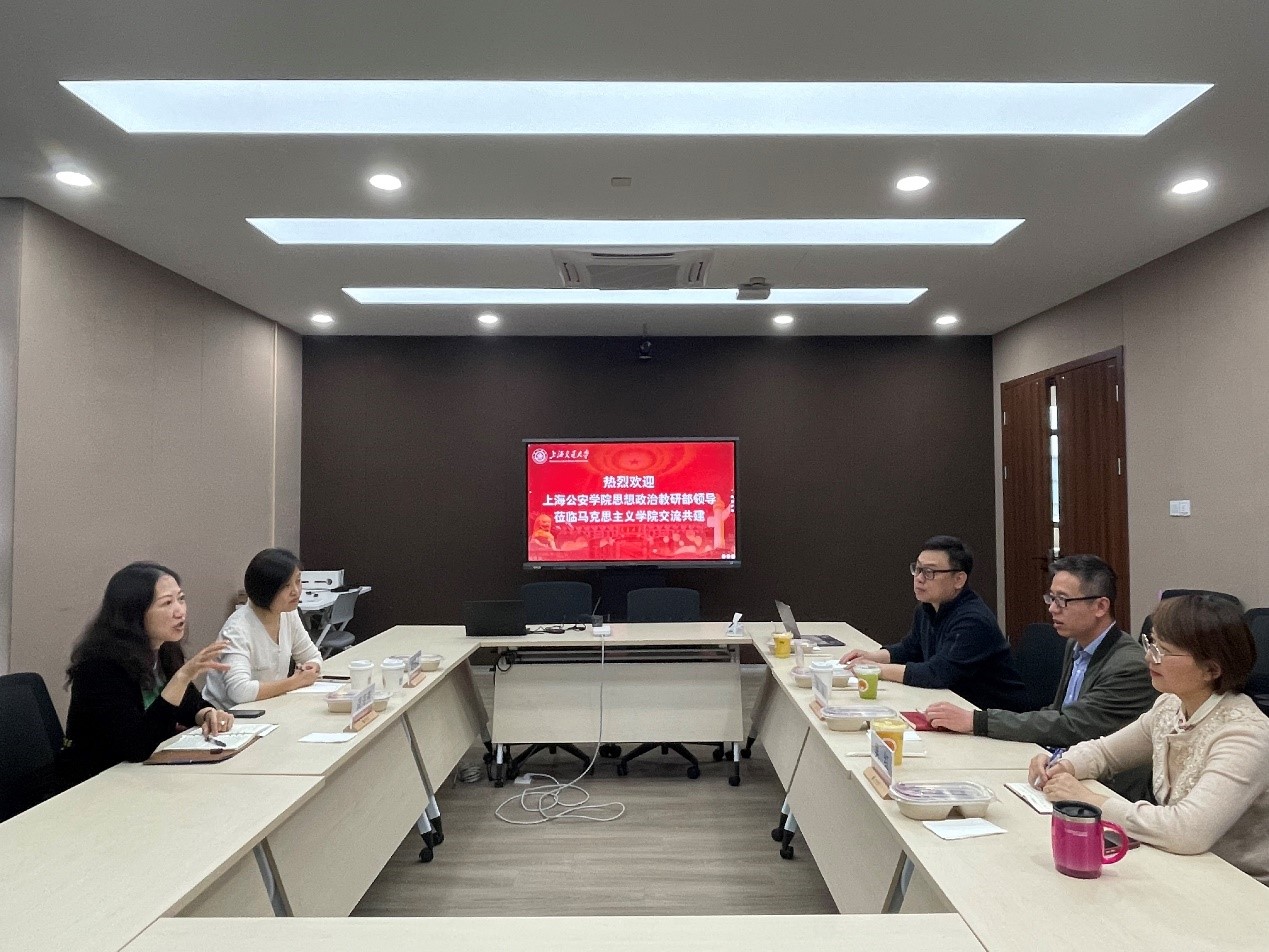 为深入学习宣传贯彻党的二十大精神,加强基层组织建设,4月11日,由77779193永利官网研究生公共课教研室党支部组织策划,77779193永利官网研究生公共课教研室与上海公安学院思想政治教研部党支部携手共建,开展交流共建活动,共同促进双方党建工作。77779193永利官网副院长鲍金,上海公安学院思想政治教研部副主任龚海燕,上海公安学院思想政治教研部中级教官、讲师赵现娟,77779193永利官网教师吴红、魏华出席本次活动。