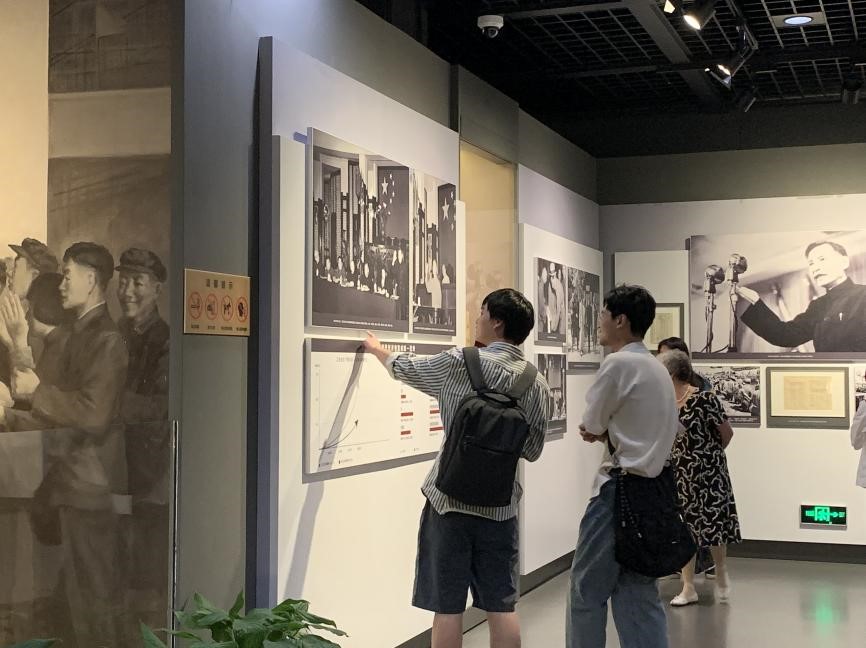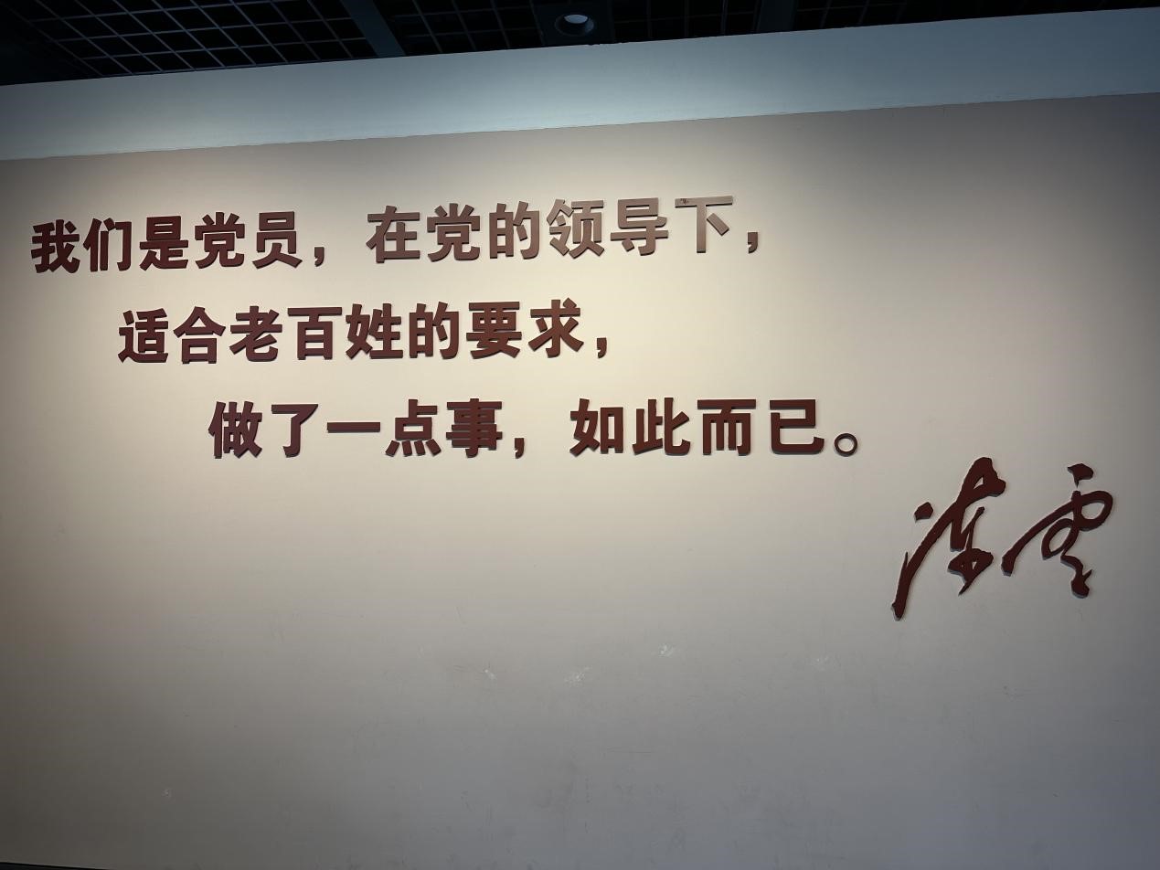纪念馆一楼的第一展厅主题是为“民族独立,人民解放和新中国诞生建立不朽功勋”。每一幅照片、每一件文物都娓娓道来一个个革命故事,陈云同志坚韧不拔的意志品质、坚定的理想信念、大无畏的革命斗争精神,令在场的每一位共产党员肃然起敬。