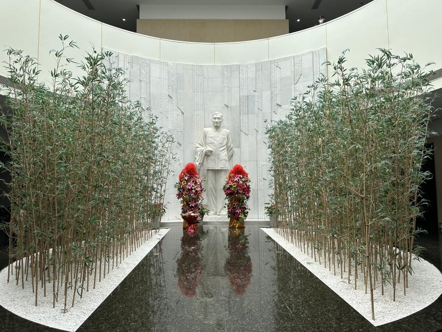 大家满怀崇敬的心情走入陈云纪念馆的序厅。首先映入眼帘的是陈云同志的全身汉白玉雕像,两侧萦绕的方竹和元竹,象征着他高雅、刚直、虚心和坚韧的高风亮节。在讲解员的介绍和引导下,我们认真参观了陈云生平业绩展、陈云故居等展厅。大家在一张张历史照片、一件件文物雕塑和一部部文献手稿前长久驻足观看,重温并缅怀了老一辈革命家波澜壮阔的伟大一生,深刻领悟了陈云同志在党和国家关键时期发挥出的卓越贡献。