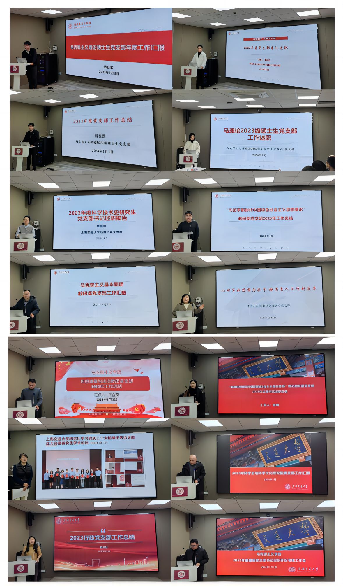 会上,5位学生党支部书记和9位教工党支部书记依次从学习贯彻党的二十大精神、主题教育相关活动开展情况,贯彻党支部工作条例、党员教育管理工作条例精神,推进党支部活动质量提升和特色创建情况,党员发展和教育管理工作等方面开展述职。同时,支部书记们也分析了支部工作当前存在的问题与不足,并对2024年的工作进行了展望。
