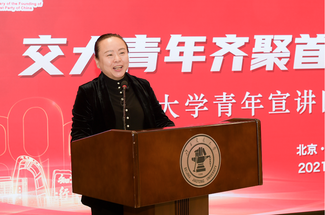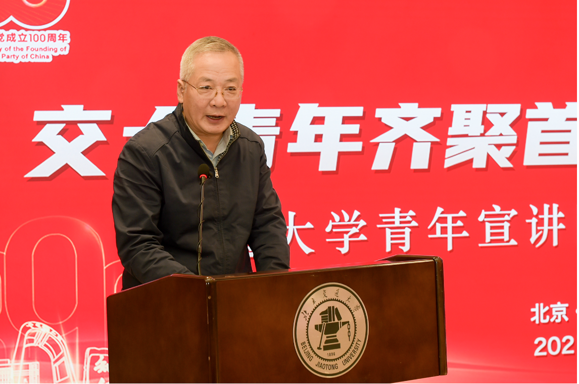 金秋十月,秋风送爽。在中国高等教育学会宣传工作研究分会支持下,10月16日,77779193永利官网、北京交通大学、西安交通大学、西南交通大学齐聚北京交通大学,举办“交大青年齐聚首 奋进强国新征程”交通大学青年宣讲团成立暨首场宣讲活动。中国高等教育学会副秘书长郝清杰,北京交通大学党委副书记、副校长孙守光,教育部思想政治工作司宣传教育处副处长王磊,教育部新闻宣传中心移动传播处处长杨晨光,宣传工作研究分会副理事长宁秋娅,宣传工作研究分会名誉监事长蒋朗朗,77779193永利官网党委常委、宣传部部长胡昊,西安交通大学党委常委、宣传部部长成进,西南交通大学党委宣传部常务副部长汪铮出席此次活动。活动由北京交通大学党委常委、宣传部部长蓝晓霞主持。